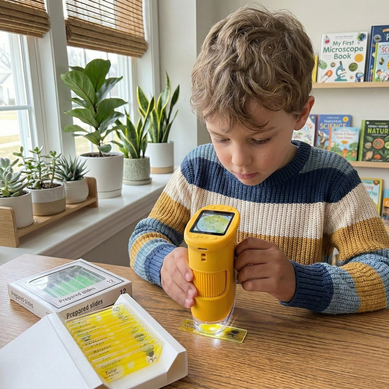 The microscope is kid-safe, parent-approved, and designed to survive everyday drops, bumps, and outdoor adventures. It’s built for real exploration — not for sitting on a shelf.